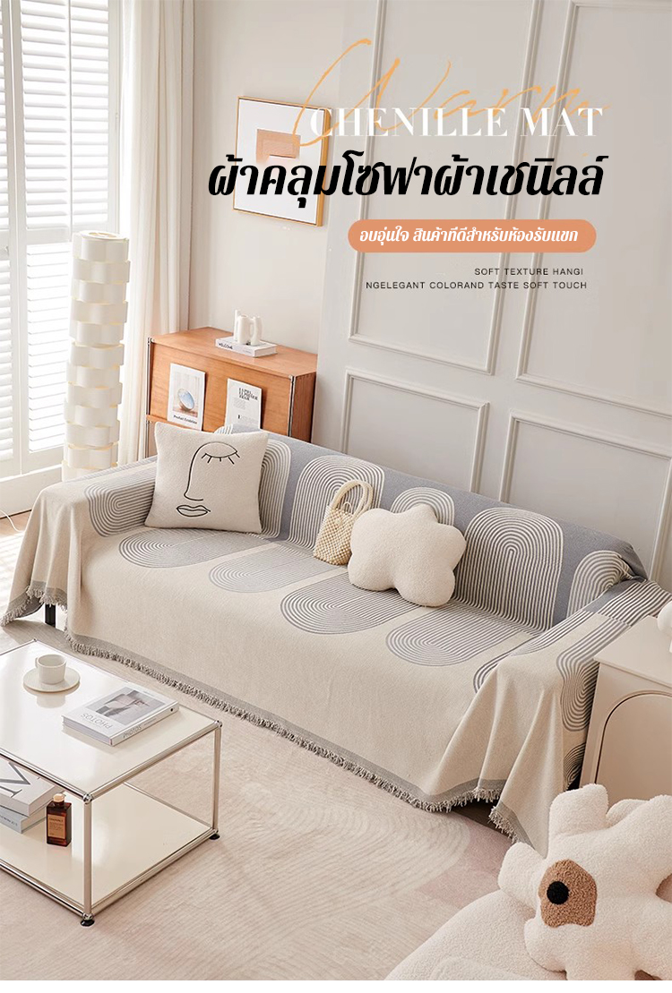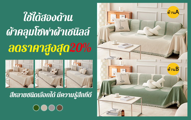 ผ้าคลุมโซฟาผ้าเชนิลล์แบบใช้ได้สองด้าน
