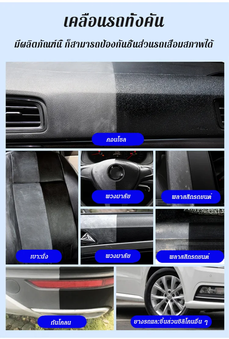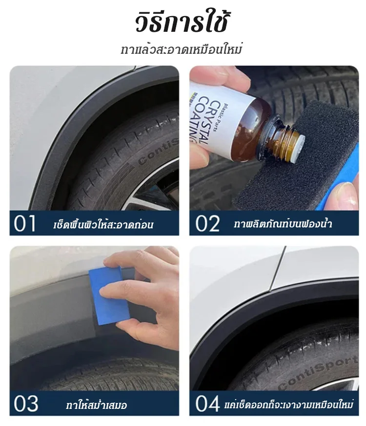 (แถมฟองน้ำ) น้ำยาเคลือบเงาพลาสติก ยางฟลูออโรซิลิโคน สำหรับรถยนต์