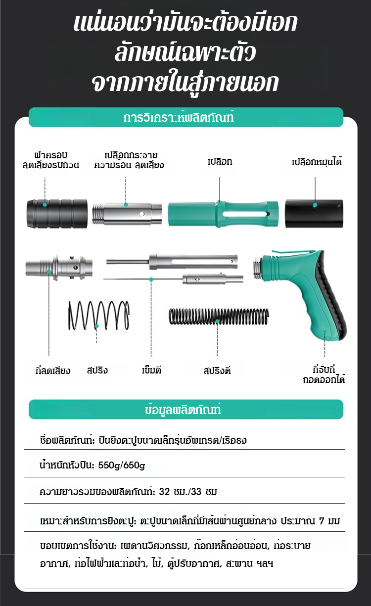 ปืนยิงตะปูติดตั้งเพดาน ขนาดเล็ก ลดเสียงรบกวน