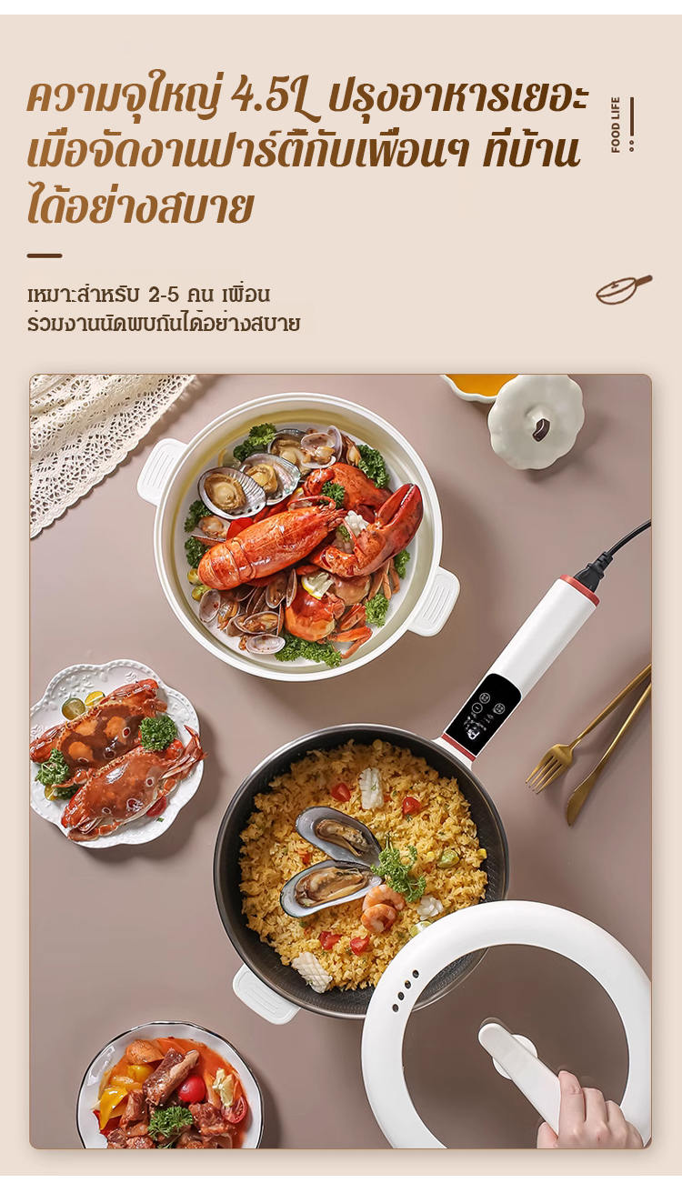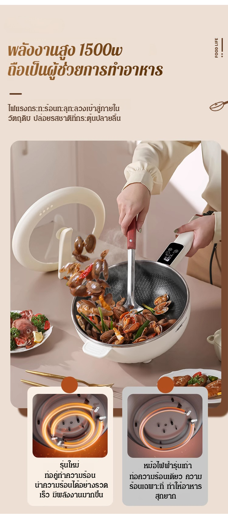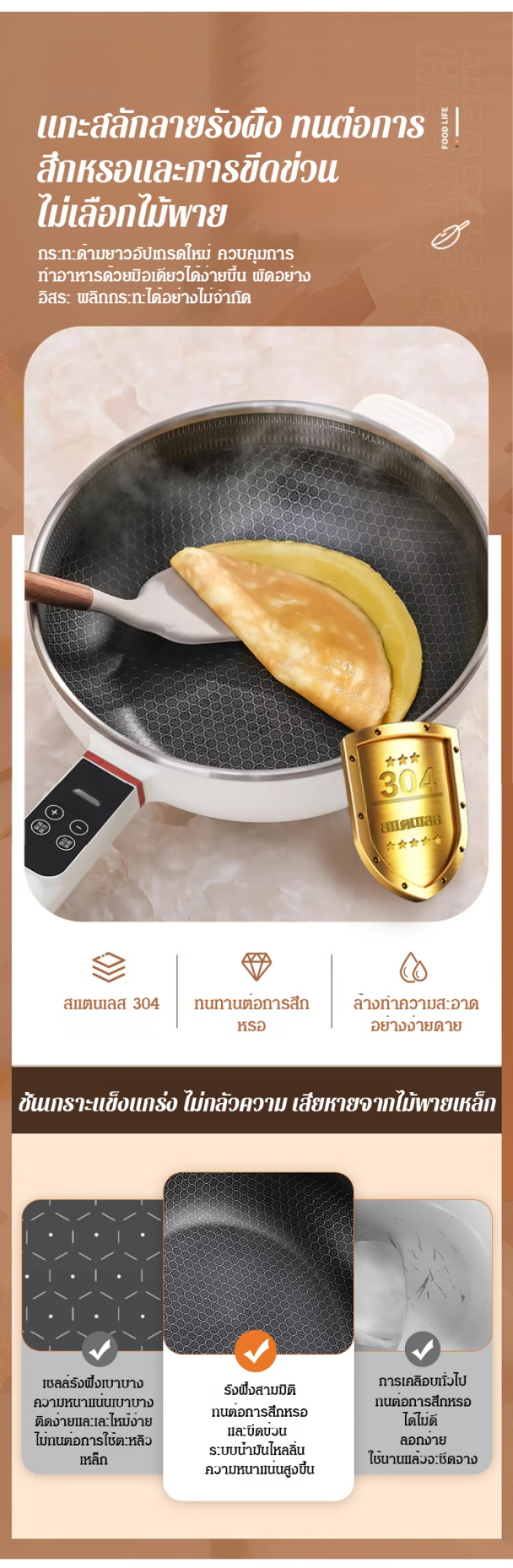 【ไม่เคลือบไม่ติด】กระทะไฟฟ้าลายรังผึ้งแบบชิ้นเดียว
