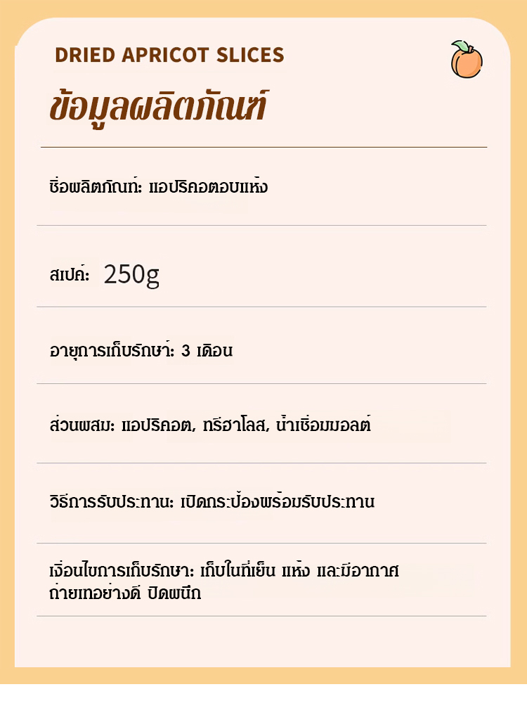 【หอมหวานนุ่มนิ่ม】แอปริคอตอบแห้ง ไม่มีเมล็ด ไม่มีสารเติมแต่ง