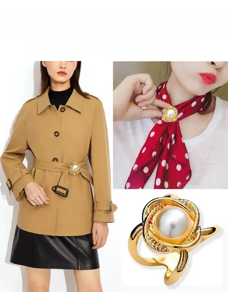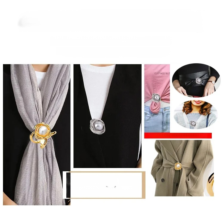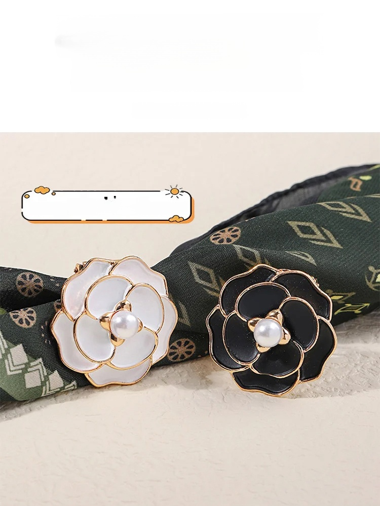 หัวเข็มขัดผ้าพันคอไหม แต่งไข่มุกแฟชั่น สไตล์ชาแนล