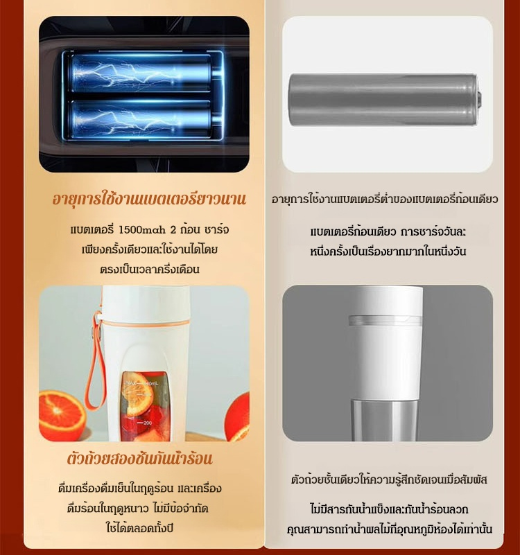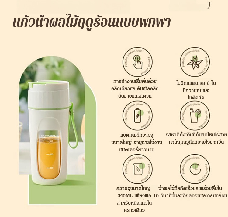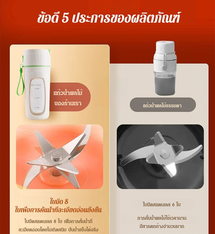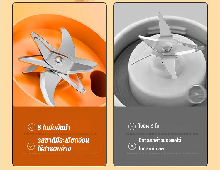 ถ้วยคั้นน้ำผลไม้ไร้สาย มีด 10 ใบแบบพกพา
