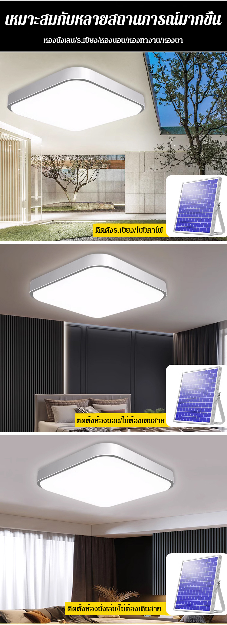โคมไฟติดเพดานพลังงานแสงอาทิตย์ทรงสี่เหลี่ยมรุ่นใหม่