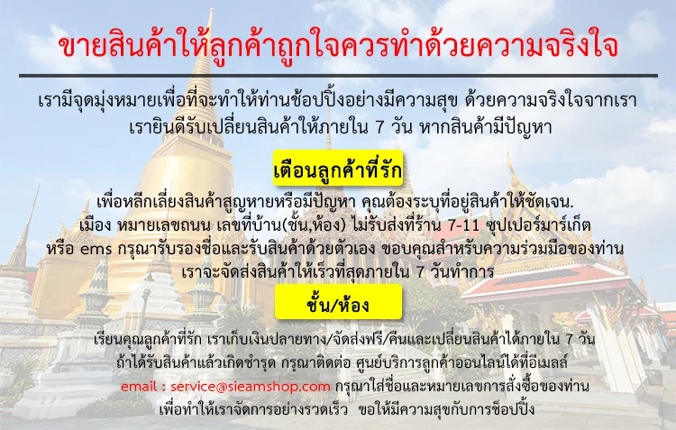 หากไม่พอใจ สามารถคืนหรือเปลี่ยนสินค้าได้ภายใน 30 วัน