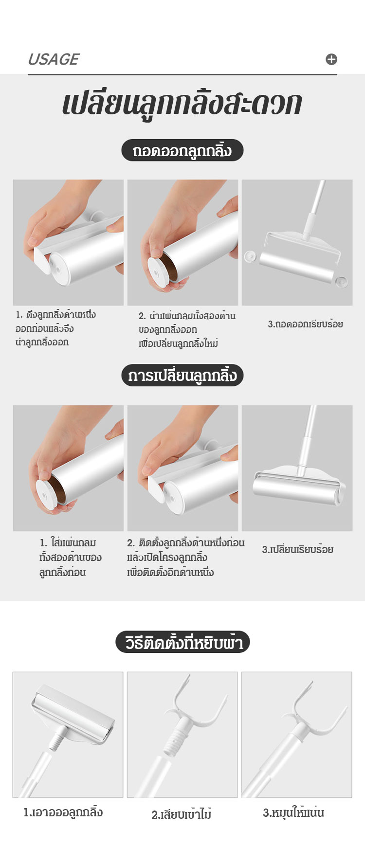 ลูกกลิ้งดักฝุ่น ด้ามยาว ยืดหดได้