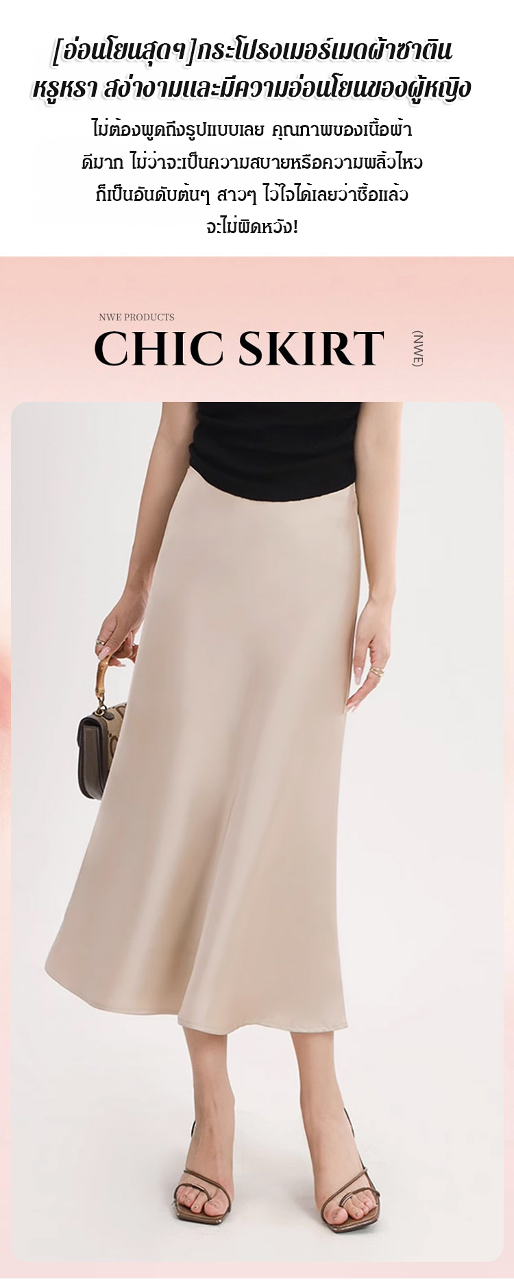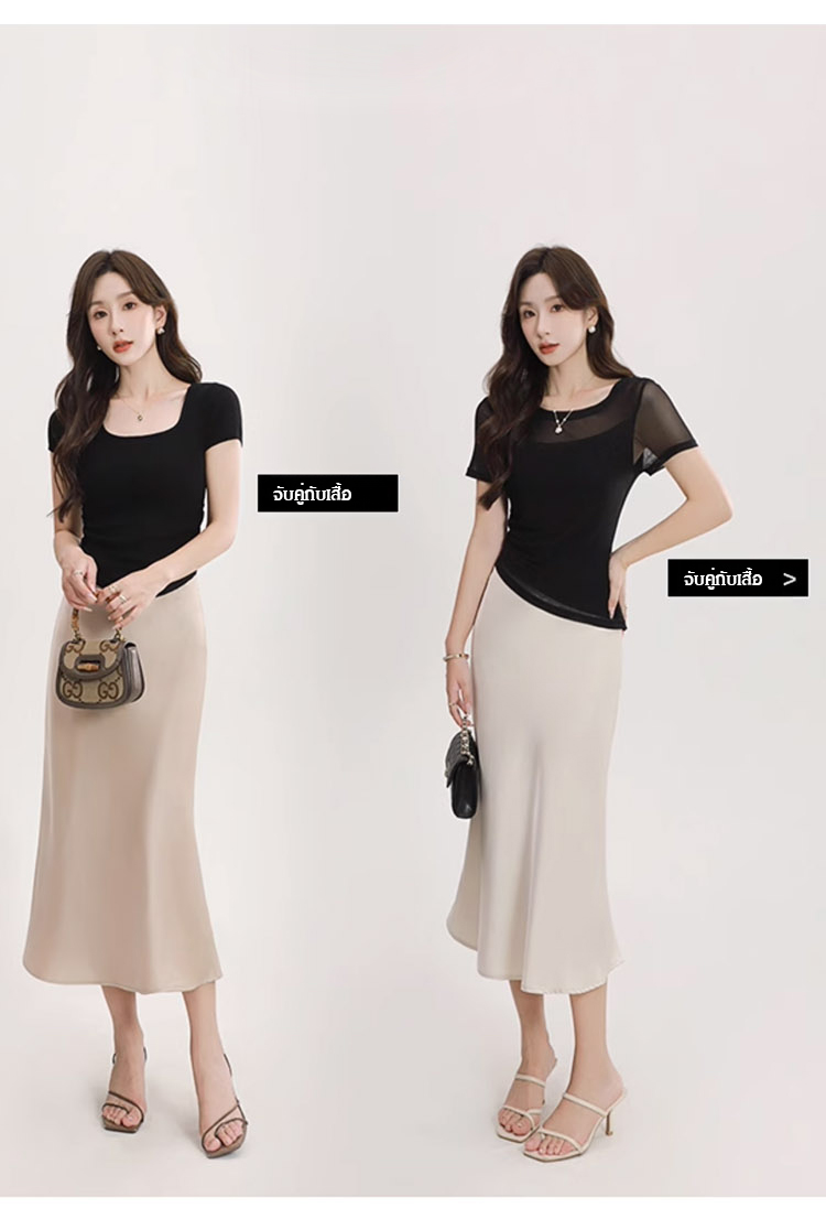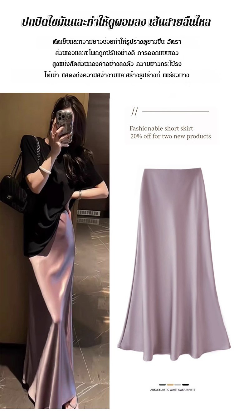 【เอวยางยืดเก็บพุง】กระโปรงเมอร์เมดบางเบาสไตล์ฝรั่งเศส