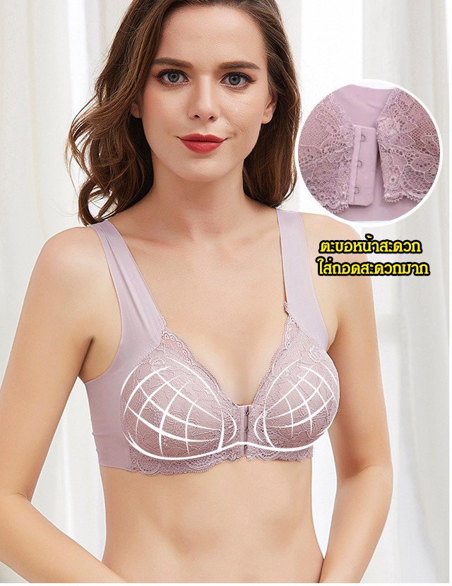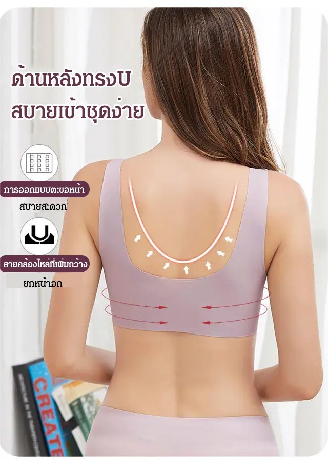 เสื้อชั้นในผ้าไหมเย็น ตะขอหน้า ไร้รอยต่อ