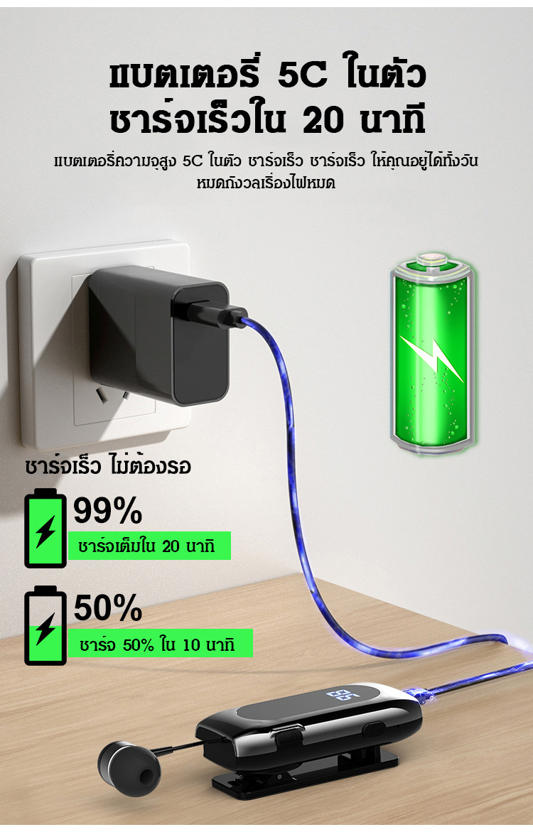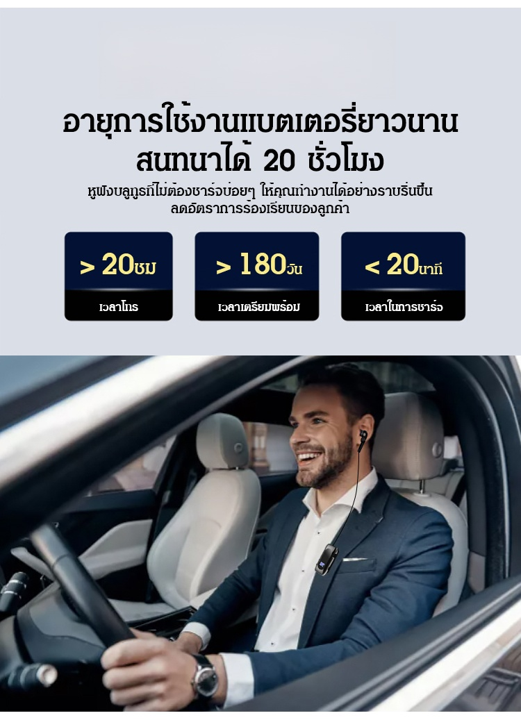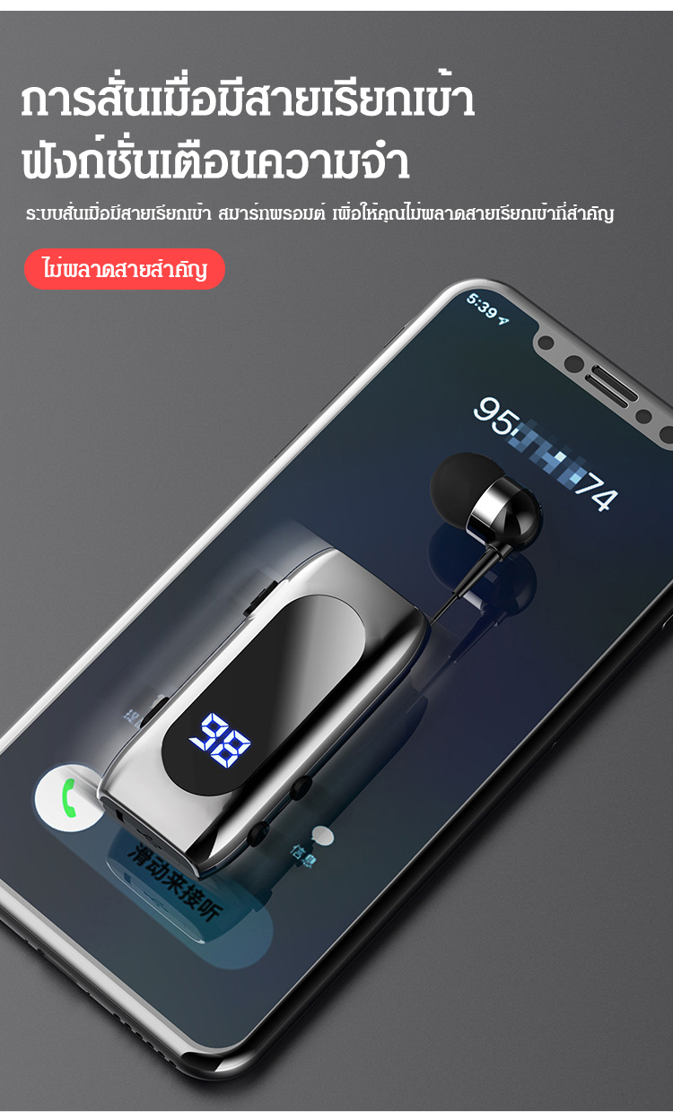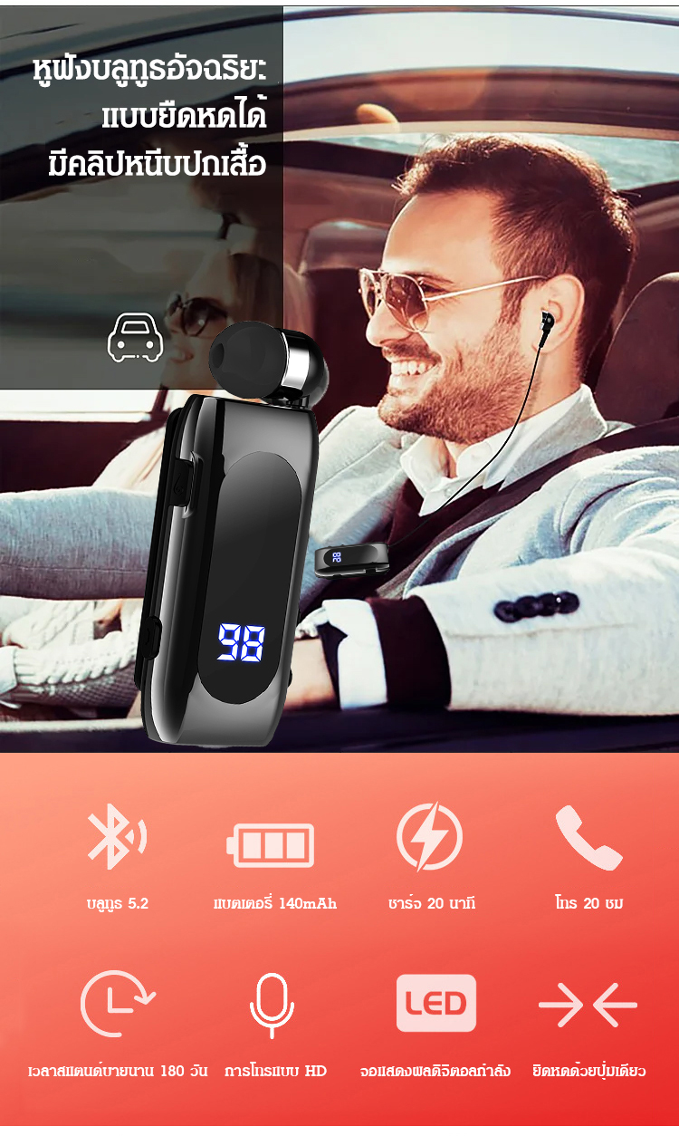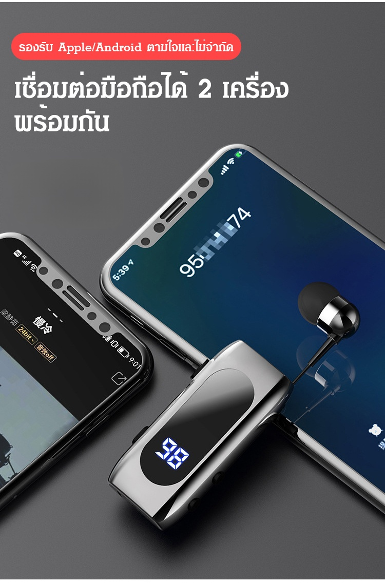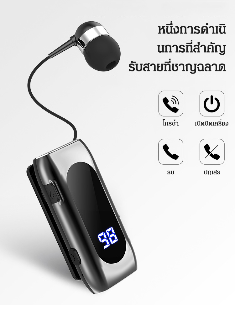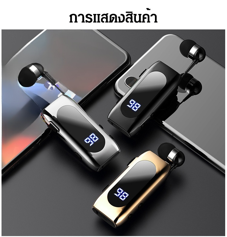 หูฟังบลูทูธอัจฉริยะ แบบยืดหดได้ มีคลิปหนีบปกเสื้อ