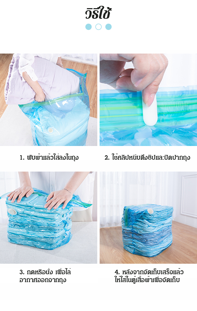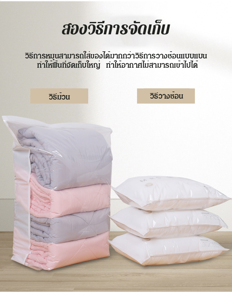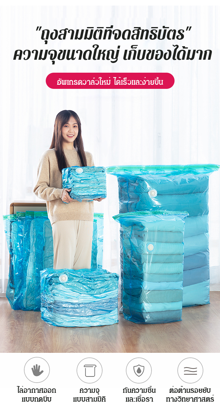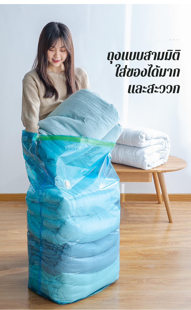 [ไล่อากาศออกใน 8 วินาที] ถุงสุญญากาศ ไม่ต้องใช้ที่สูบ ขนาดใหญ่พิเศษ