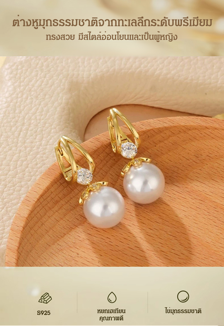 ต่างหูมุกธรรมชาติระดับพรีเมียม