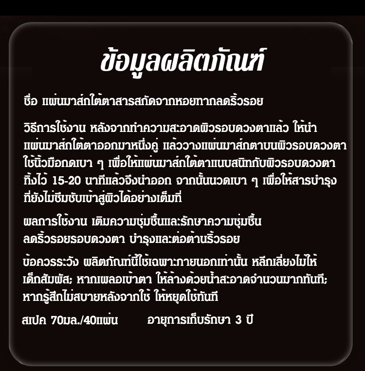 แผ่นมาส์กใต้ตาสารสกัดจากหอยทากลดริ้วรอย