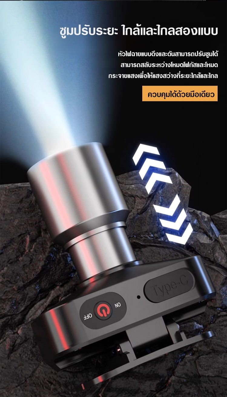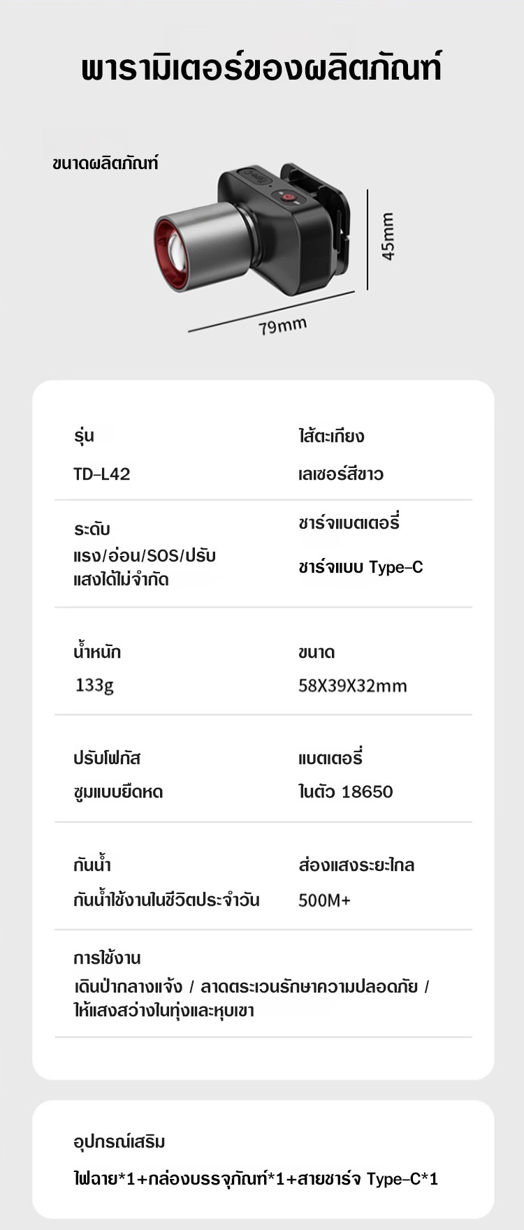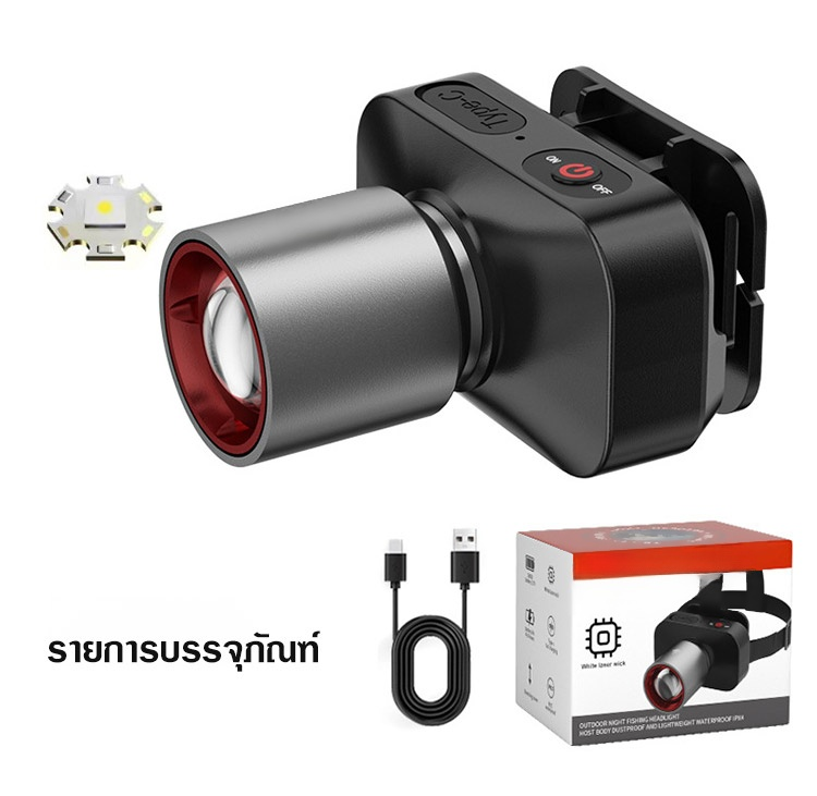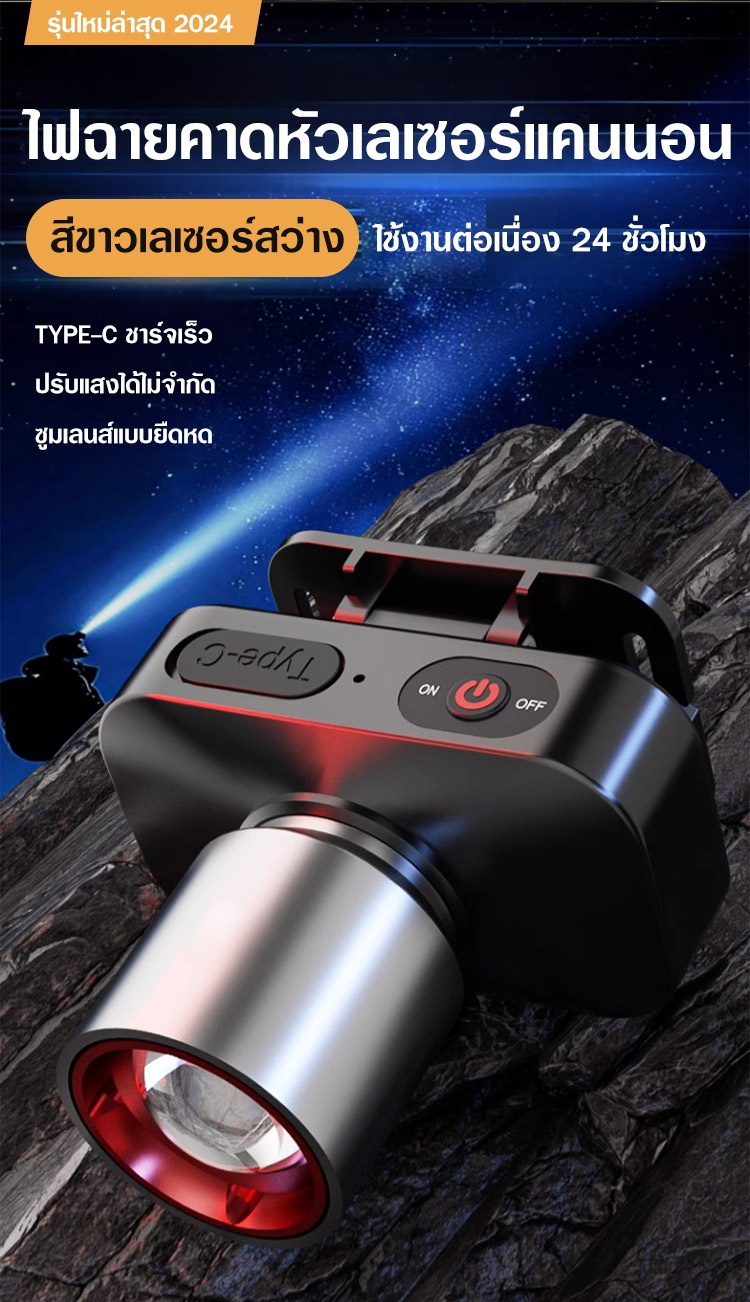 【ดวงตาแห่งรัตติกาล】ไฟฉายคาดหัวเลเซอร์สีขาวปรับซูมแบบยืดไสลด์