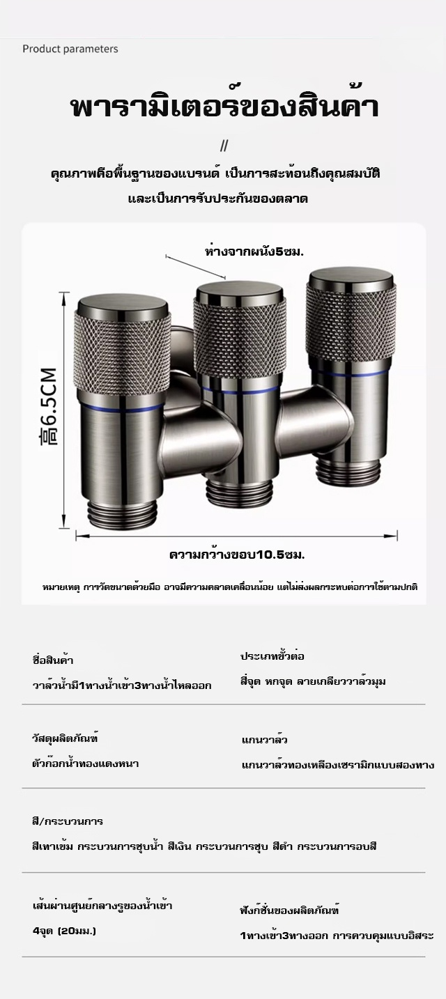 【1ทางน้ำเข้า3ทางน้ำไหลออก】วาล์วน้ำสามทางควบคุุมน้ำเข้าและน้ำไหลออก