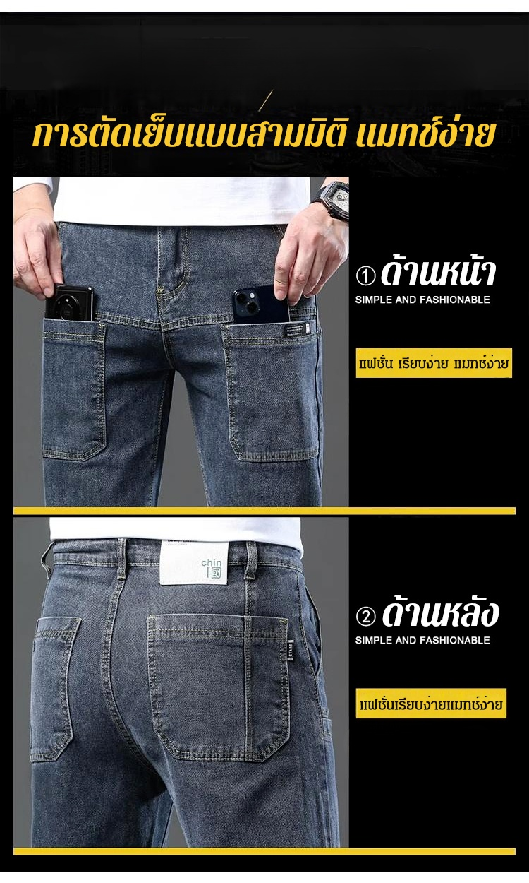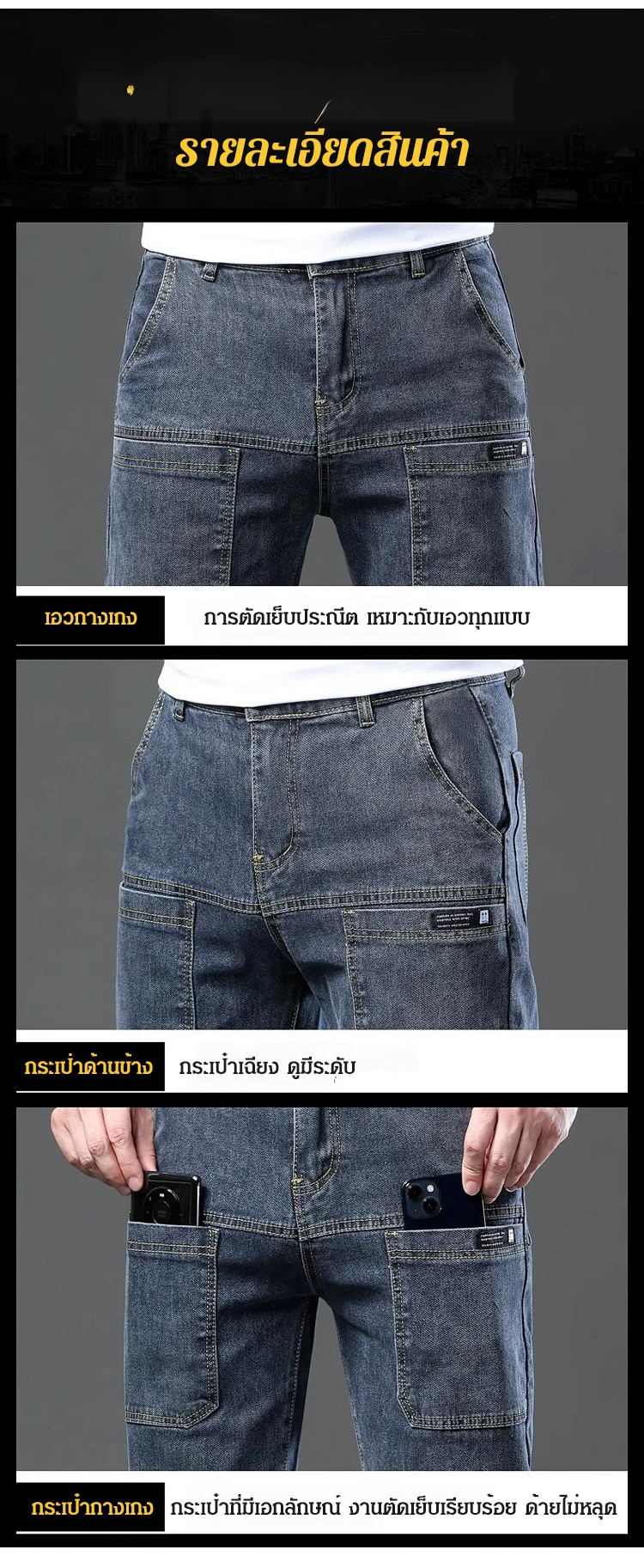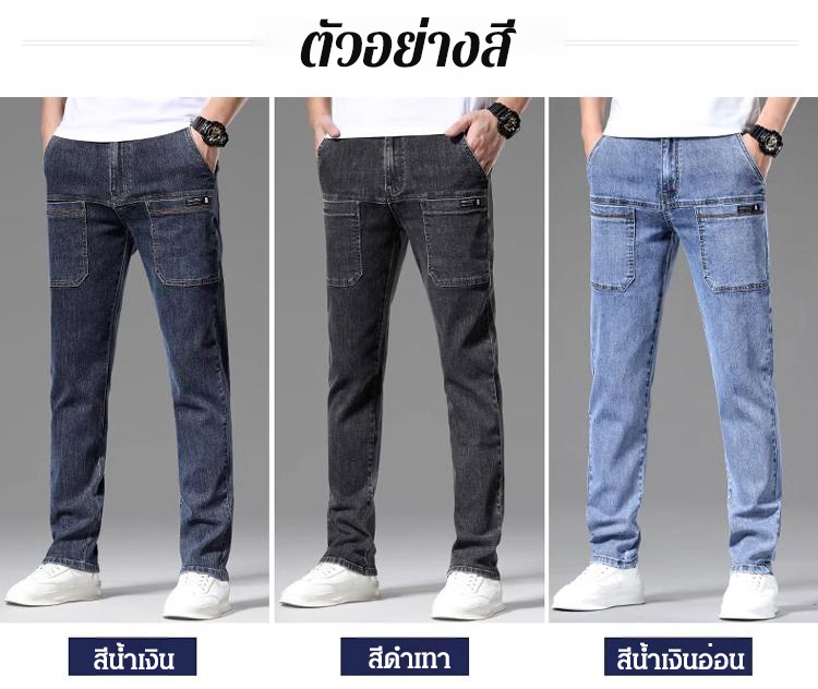 กางเกงยีนส์ผ้ายืดผู้ชาย ทรงขากระบอก