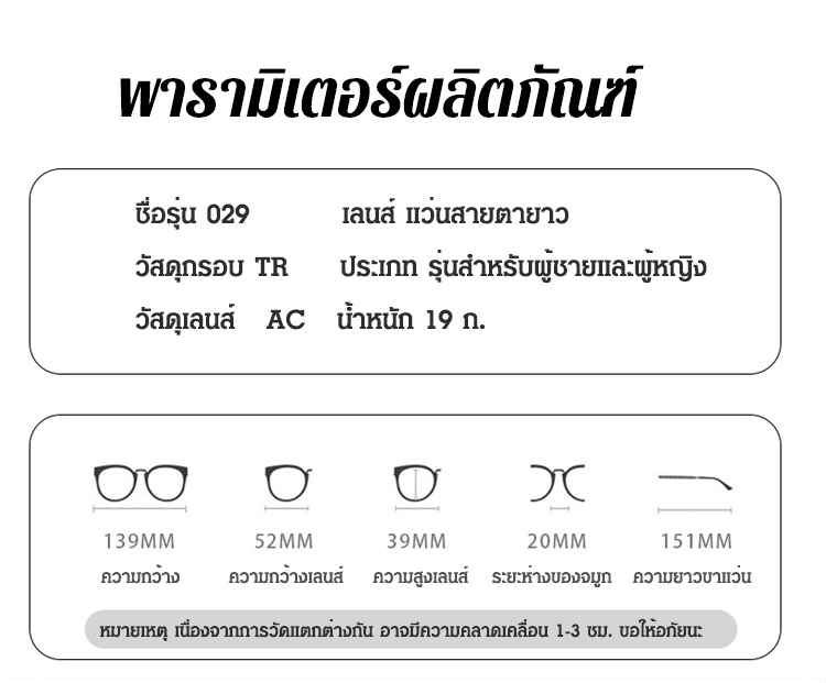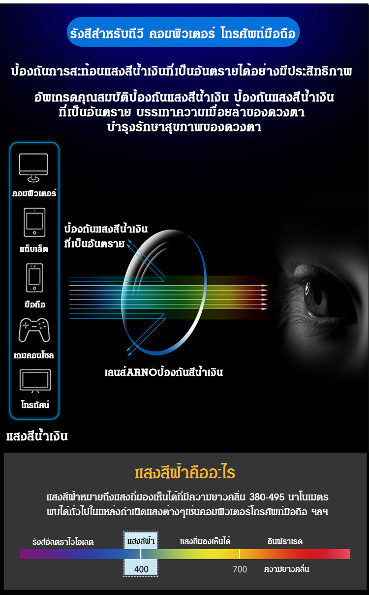 แว่นสายตายาวเปลี่ยนสีกันแสงสีฟ้า
