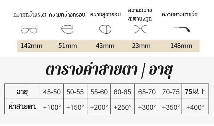 แว่นสายตายาวกรอบโลหะสี่เหลี่ยม ป้องกันแสงสีฟ้า รุ่นใหม่