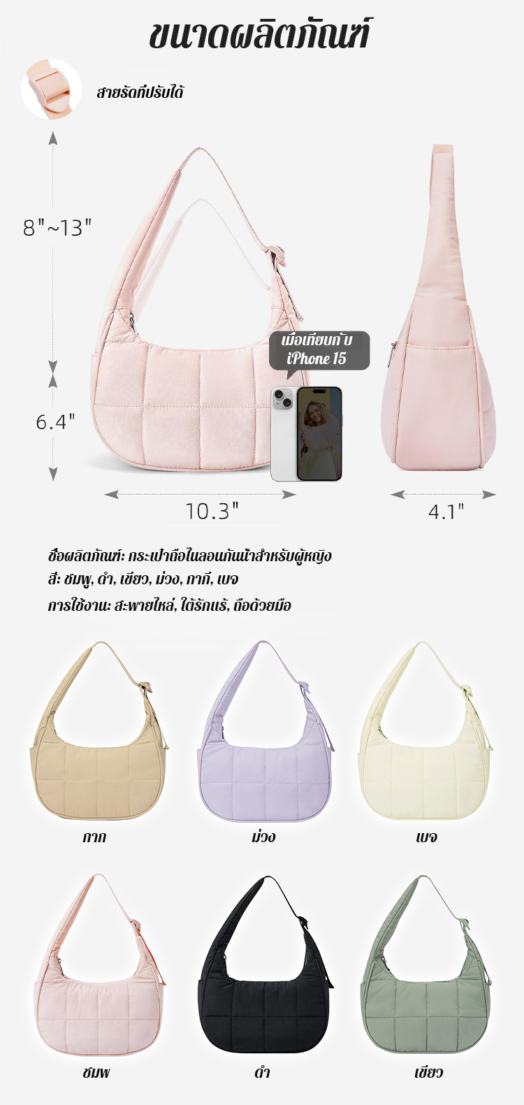 กระเป๋าถือไนลอนกันน้ำสำหรับสุภาพสตรี