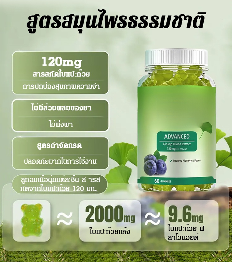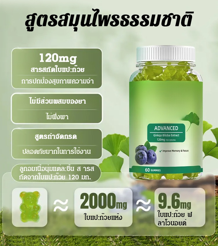 【เคล็ดลับเพิ่มความจำ】อาหารเสริมกัมมี่ใบแปะก๊วยขายดี