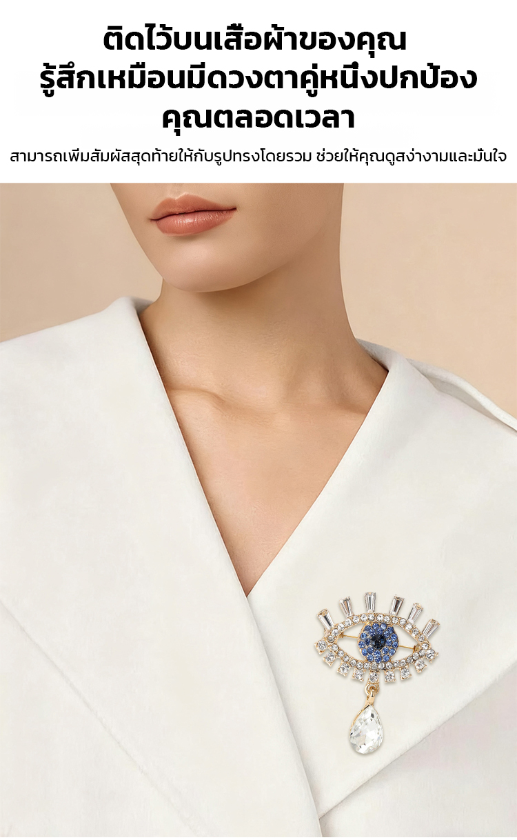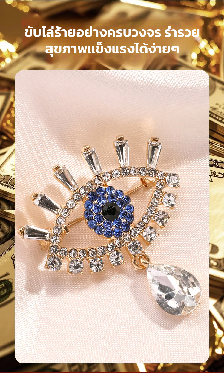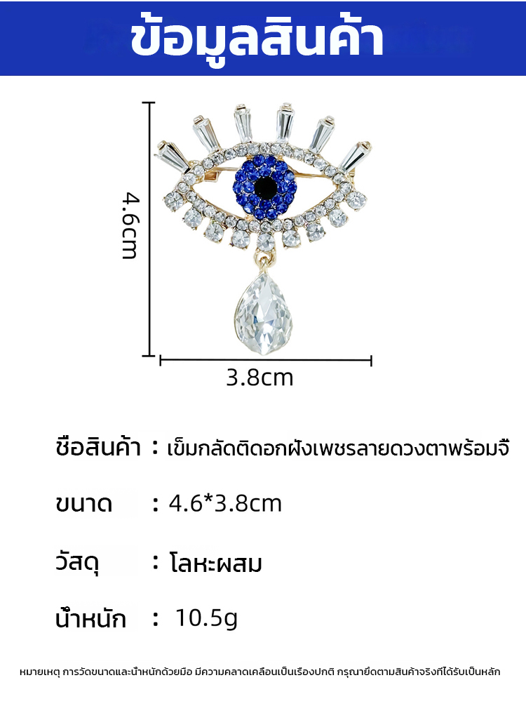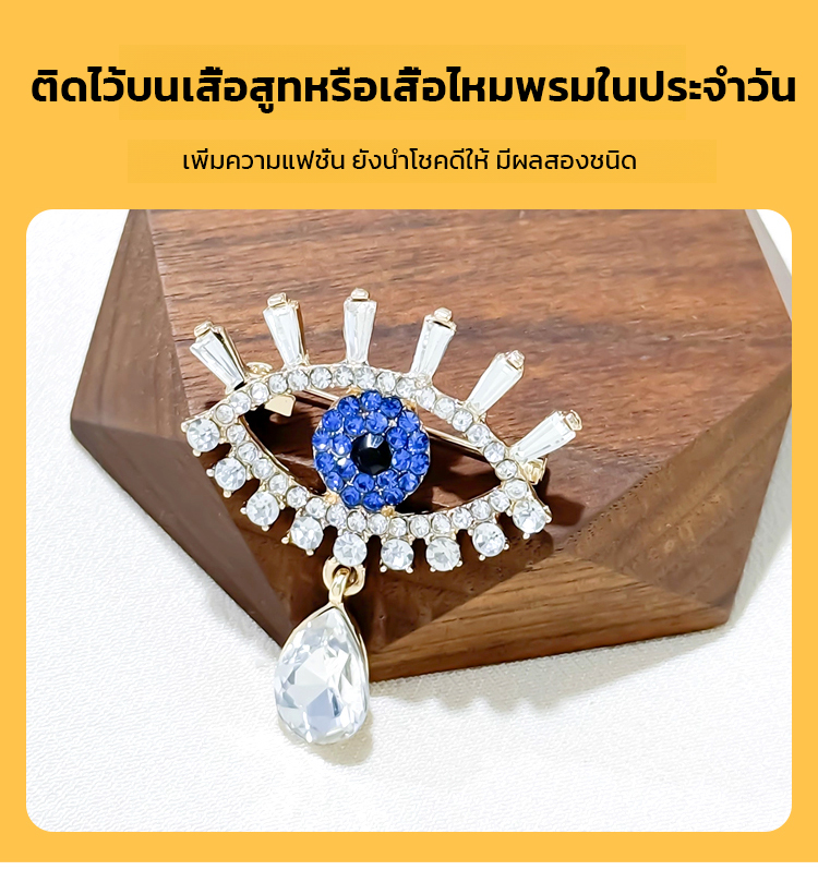 เข็มกลัดติดอกฝังเพชรลายดวงตาปีศาจ